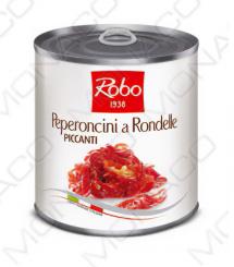 Italské chilli papričky patří pevně do místní kuchyně. Přidávají se do mnoha pokrmů, i z běžné pasty vykouzlí kulinářský zázrak. Pálivé papričky značky Robo se prodávají v plechovce a naložené ve slunečnicovém oleji. Jsou nasekané na malé kousky, což usnadňuje jejich použití. Ideální pro dodání pikantního nádechu každému pokrmu; Perfektní k dochucení těstovin, pizzy,nebo bruschetty.