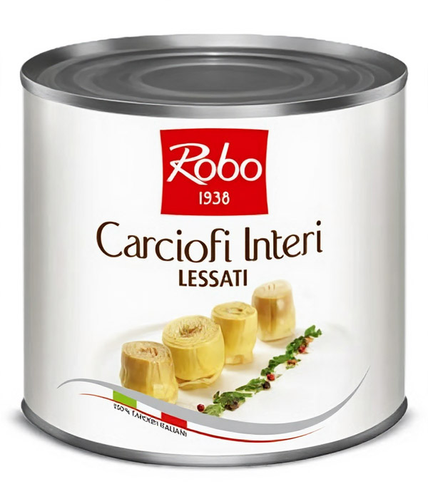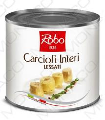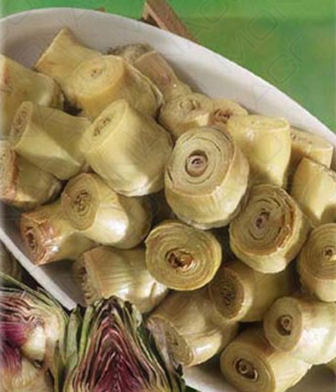 Celé artyčoky naložené v mírně slaném nálevu získané z čerstvých vybraných a oloupaných artyčoků. Tepelně upravené.