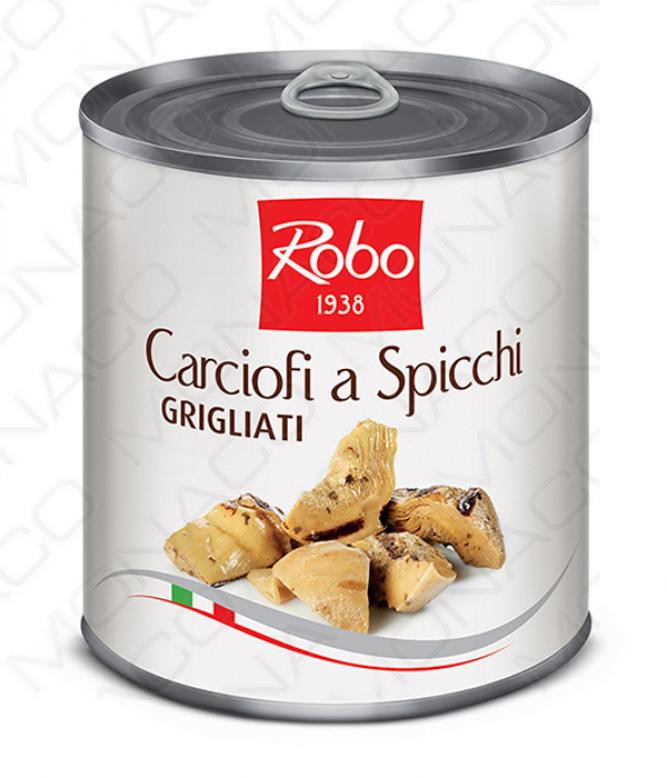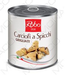 Artyčoky Carciofi - vybrané, zralé a umyté artyčoky, očištěné od nejedlých částí, nakrájené na čtvrtky a grilované. Následně naložené ve slunečnicovém oleji a balené do plechovek.