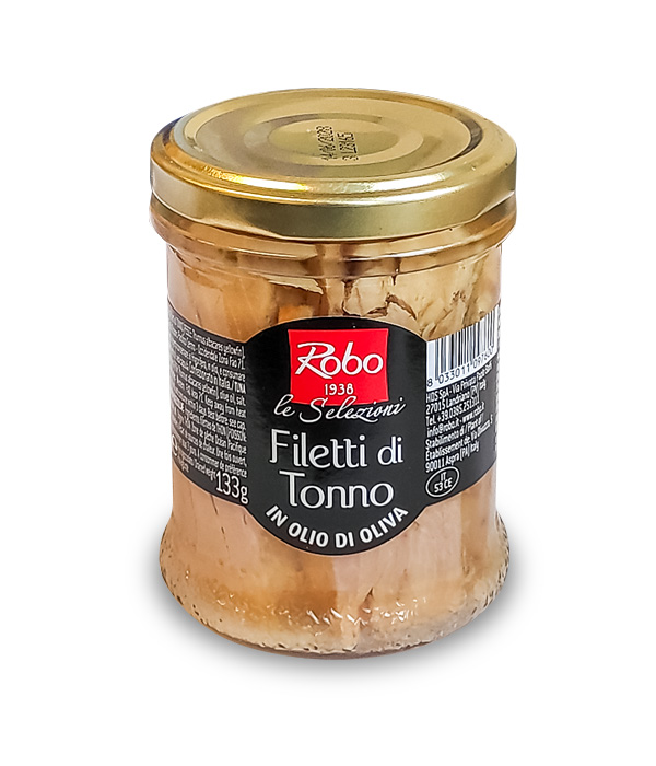 Filety tuňáka žlutoploutvého naložené v olivovém oleji.