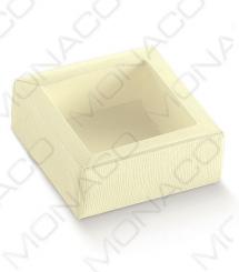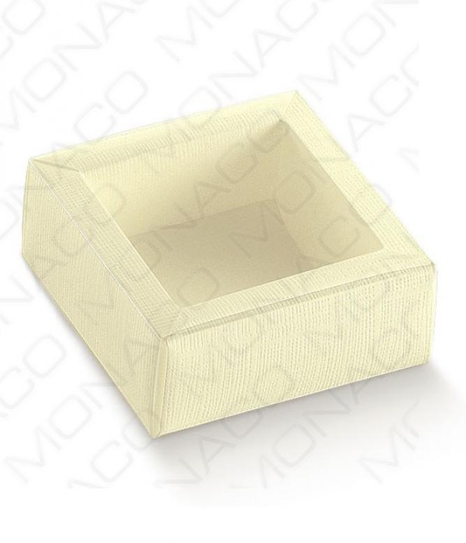 Elegantní papírová krabička na pralinky v bílé barvě a reliéfemdekoru. Dodáváno s plastovým obalem. Krabičky i s obalem jsou standardně dodávány v rozloženém stavu.