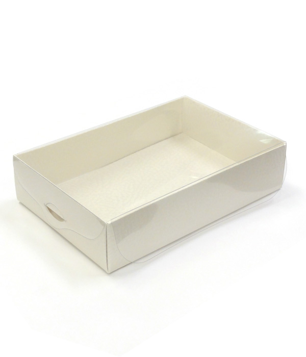 Krabice s průhledným víkem 150x100 v.35mm (kůže bílá) 10 ks/bal