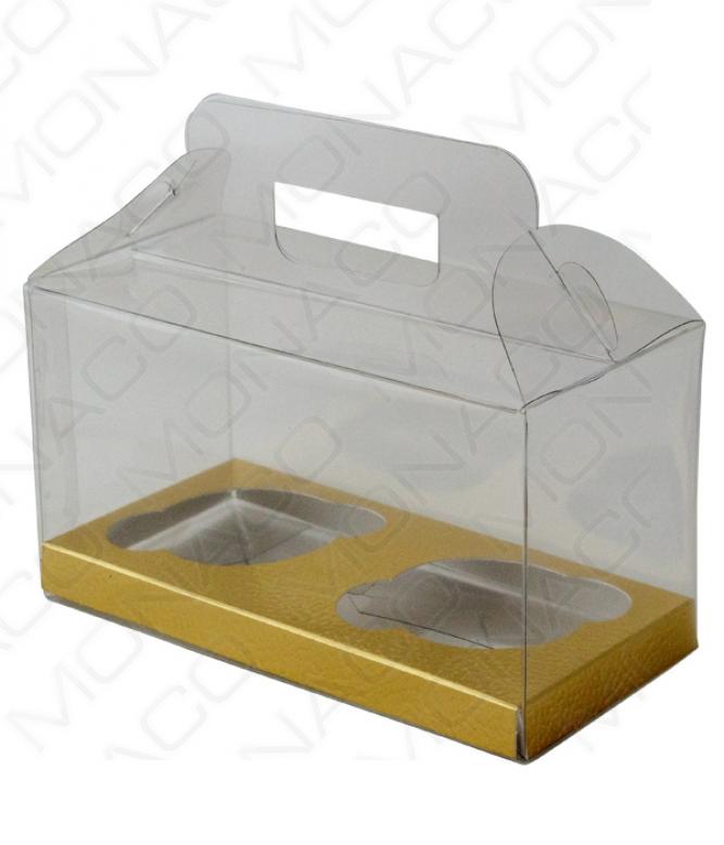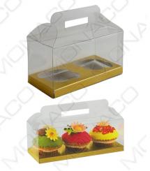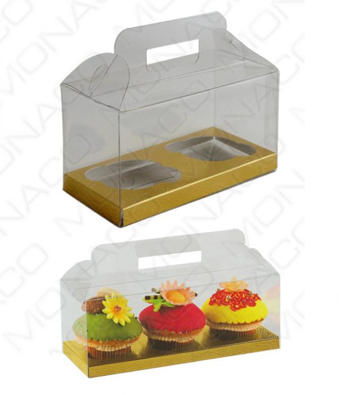 Plastová průhledná krabička s uchem na cup cake, muffin aj. Krabička se dodává včetně zlato-bílého dna k oboustrannému použití. Elegantní a jednoduché provedení.Krabičky jsou standardně dodávány v rozloženém stavu.