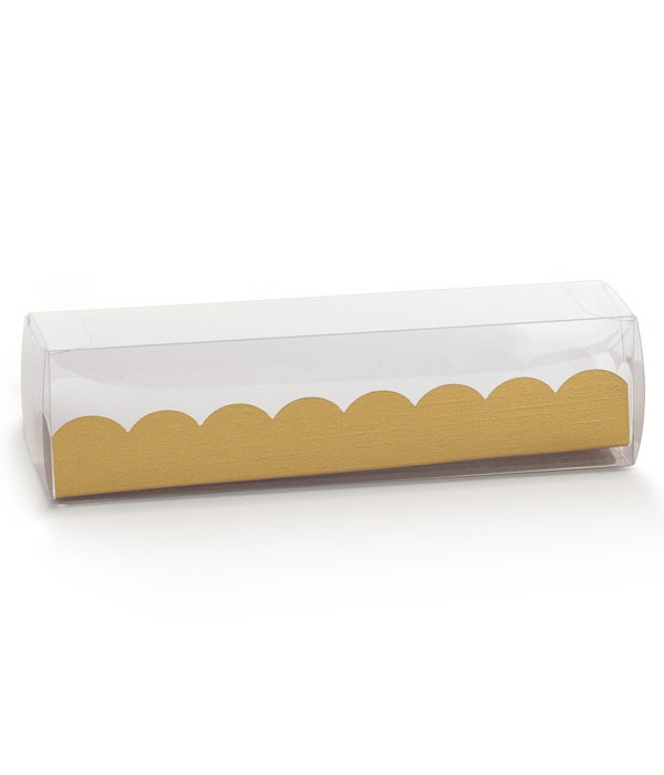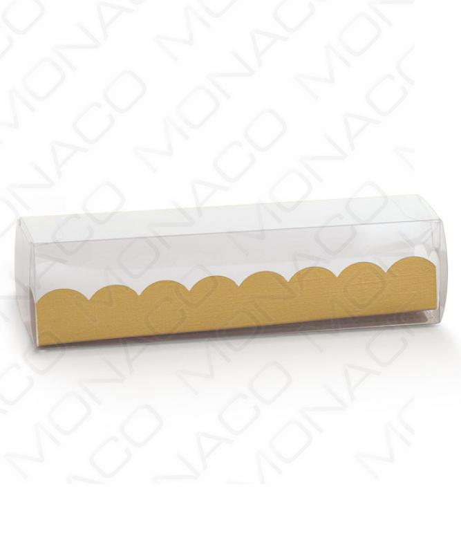 Velice elegantní plastová krabička s papírovovou vložkou se vzorem zlatého vlákna.