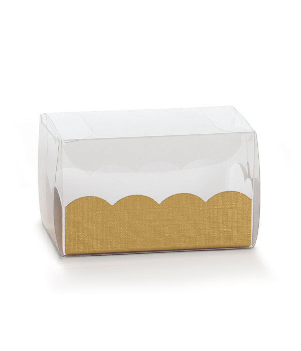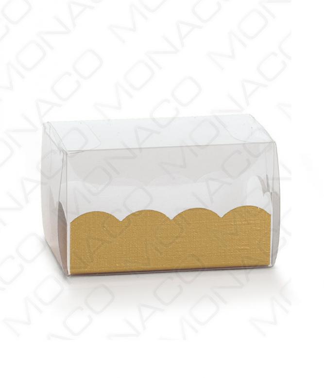 Velice elegantní plastová krabička s papírovovou vložkou se vzorem zlatého vlákna.