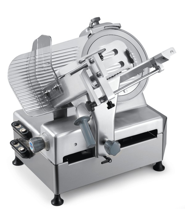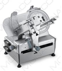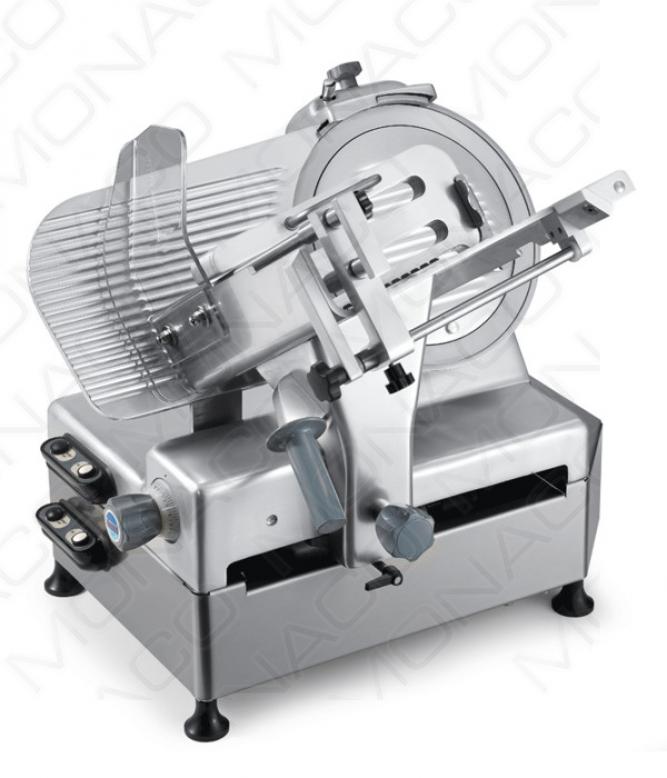 Nářezový stroj s gravitačním ukládáním plátků, vhodný pro středně velké provozy a střední zátěž.