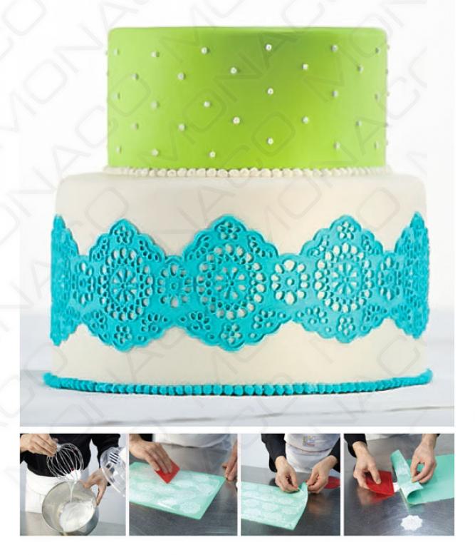 Silikonová podložka s jemným reliéfem pro výrobu cukrových krajek v různých dekorech (Sugarveil).