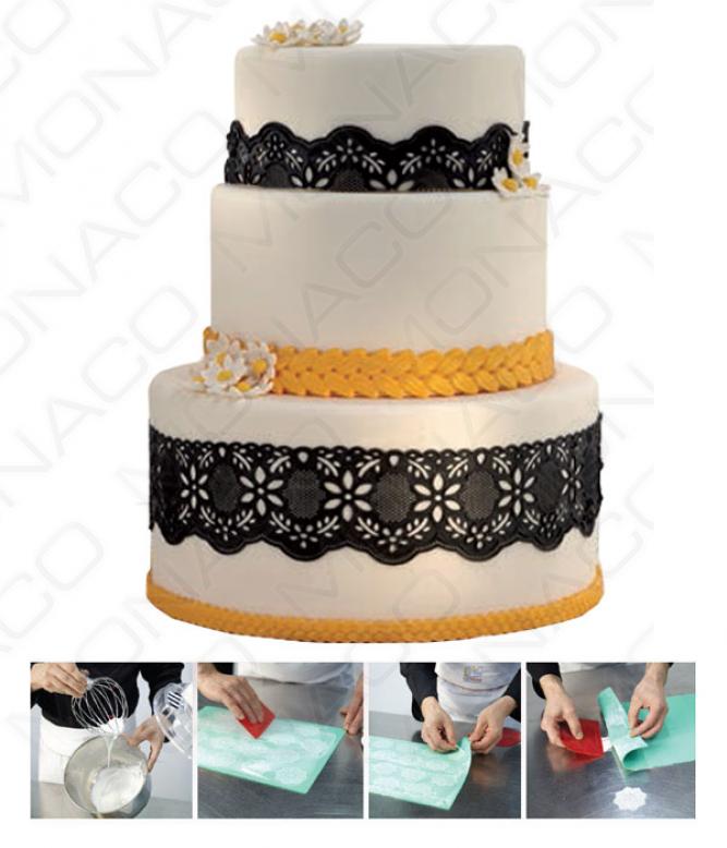 Silikonová podložka s jemným reliéfem pro výrobu cukrových krajek v různých dekorech (Sugarveil).