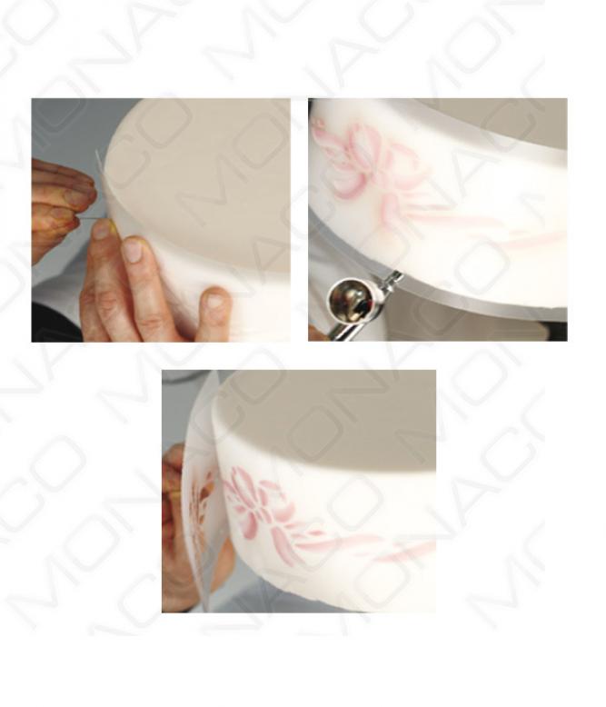 Její použítí je různé: především je určena pro práci se stříkací pistolí (nástřik barvami přes kompresor) a zároveň po přiložení na dort