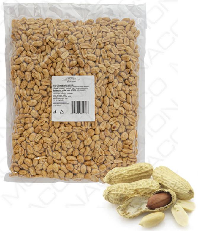 Arašídy loupané pražené na sucho. Vakuové balení garantuje čerstvost a krokantnost pražených arašídů.