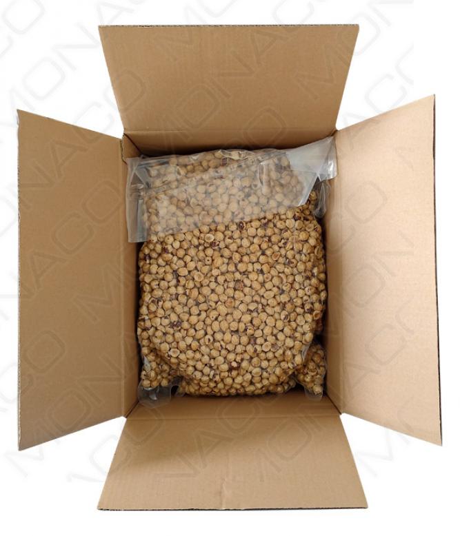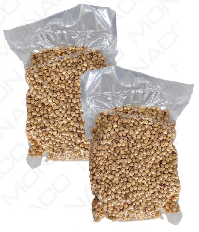 Blanšírované, pražené kalibrované lískové oříšky. Slupka do 20%.Vakuové balení garantuje čerstvost a krokantnost pražených oříšků.