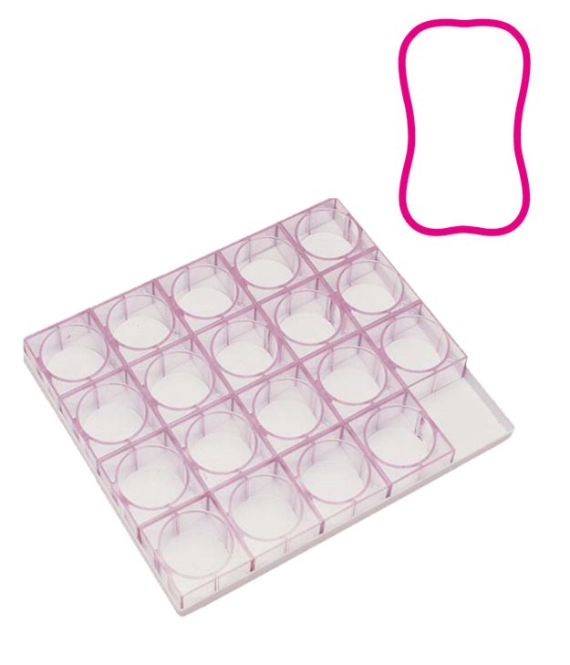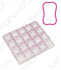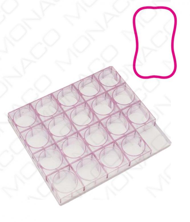 Plastový tác se zvýšenými okraji (40x34cm, výška 4cm) a formami na přípravu dezertů "monoporcí" za studena. Pro přípravu je potřebný