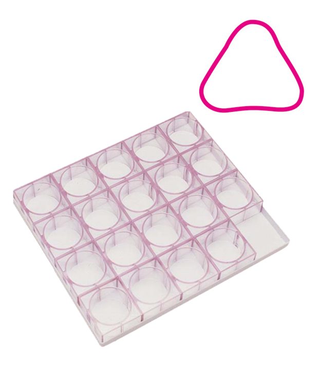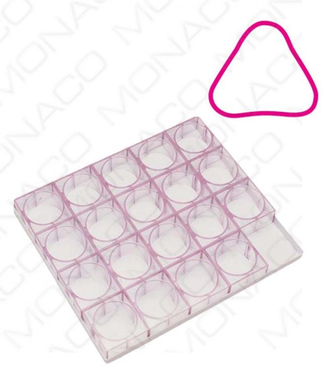 Plastový tác se zvýšenými okraji (40x34cm, výška 4cm) a formami na přípravu dezertů "monoporcí" za studena. Pro přípravu je potřebný