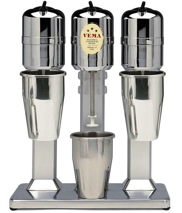 Pultový frapovač se třemi nerezovými nádobami. Je vybaven hlavním vypínačem, provozním mikrospínačem, zabudovanou hřídelí a speciálně navrženými míchacími nástavci. Nástavce mohou být v nerezovém nebo plastovém provedení. Ideální k přípravě mléčných shaků a frappé nebo ke šlehání majonézy a omáček.