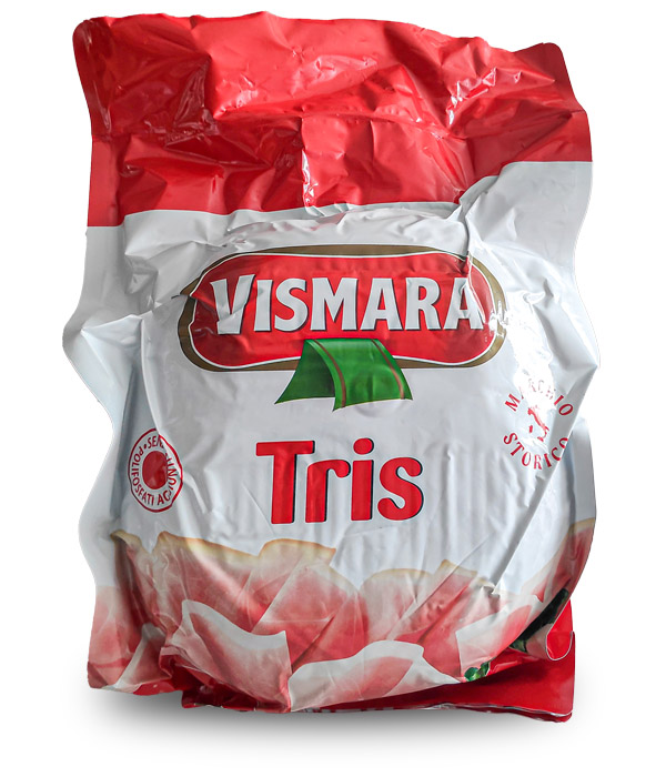 Prosciutto cotto Tris je výběrová vařená vepřová šunka, ochucená rozmarýnem a dalšími středomořskými bylinkami. Je vyrobená z vykostěné vepřové kýty, solená a ochucená ve slaném nálevu, ručně tvarovaná a vařená podle tradice.