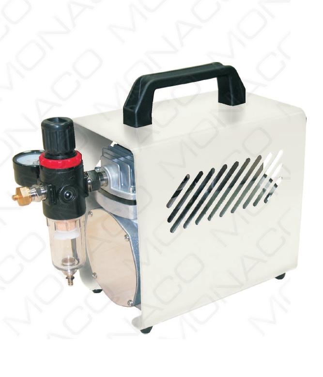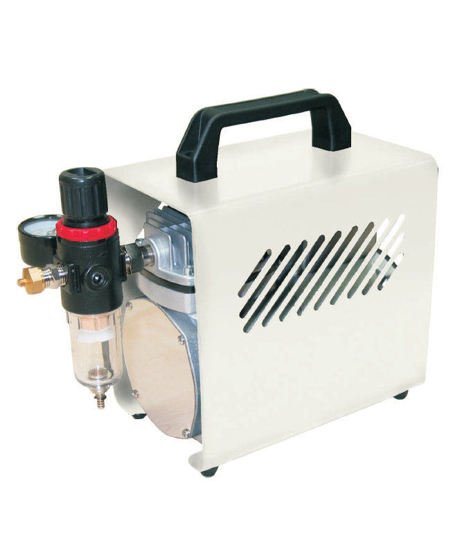 Vzduchový kompresor k fixírce s plynulým regulátorem tlaku.